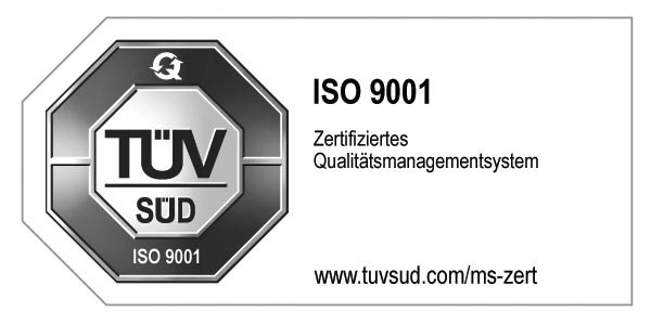 - Zertifizierung nach DIN EN ISO 9001:2015 durch den TÜV Süd